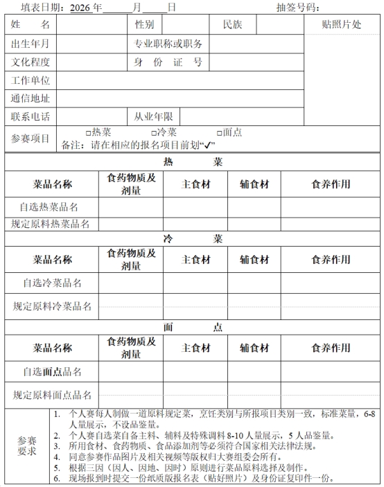 2.烹饪爱好者:对中医药膳烹饪有浓厚兴趣和一定实践经验的个人,可独立参赛(附件3)。