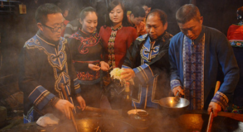 土家赶年有着丰富的节日活动:备年肉、送灶神、扫扬尘、推豆腐、炒炒米、炸团馓、打粑粑、做糖糁、贴年对年画、杀鸡宰鸭、柏梅钱纸、过赶年、吃团年饭、守岁抢年、拜年……各种各样年味十足的土家族习俗,直把年的氛围闹得红红火火。