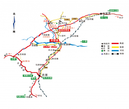 经包茂高速至吉首收费站下,沿S229到达芙蓉镇·红石林度假区。