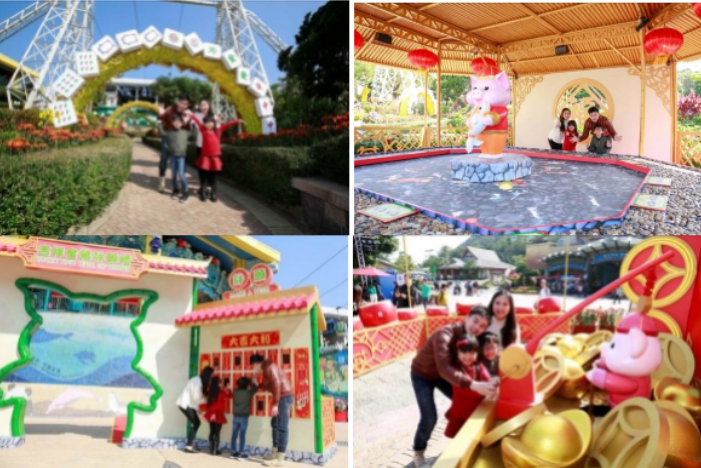 海洋公园海滨乐园广场于“新春开运来”活动期间化身怀旧聚集地,让一家大小尽情投入热闹欢腾的新年气氛。游客可于全新景点“迎‘猪’接福许愿池”、“吉祥金猪许愿墙”及“金猪怀旧大笪地”,大玩互动小游戏、设计独一无二的电子挥春和巧钓巨型金猪,祝愿新一年万事如意;还可到“猪笼入水财神殿”和“吉祥牌坊阵”与财神爷和特大麻将阵合照,让新一年财气大旺。