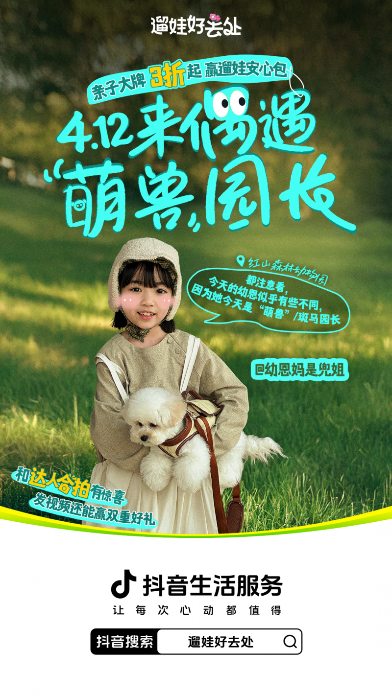 无论是与红山 动物“顶流” 的互动,还是与亲子达人的趣味邂逅,抑或是丰富多彩的线下玩法和丰厚的福利机制,这次活动旨在让小朋友们“玩中有学”的同时,也希望为大朋友们提供更多“遛娃难题”的解决思路。而且,这次活动只是一个开始,抖音生活服务“遛娃好去处”还会将线下沉浸式体验和线上流量势能进一步打通,让“春日去动物园遛娃”的生活方式不止在南京!后续,抖音生活服务“遛娃好去处”还会在全国范围内开展巡游活动,“动物好友” 贴贴墙、各地多家知名动物园“当红花旦”联动等惊喜将持续释放,让我们一起期待!